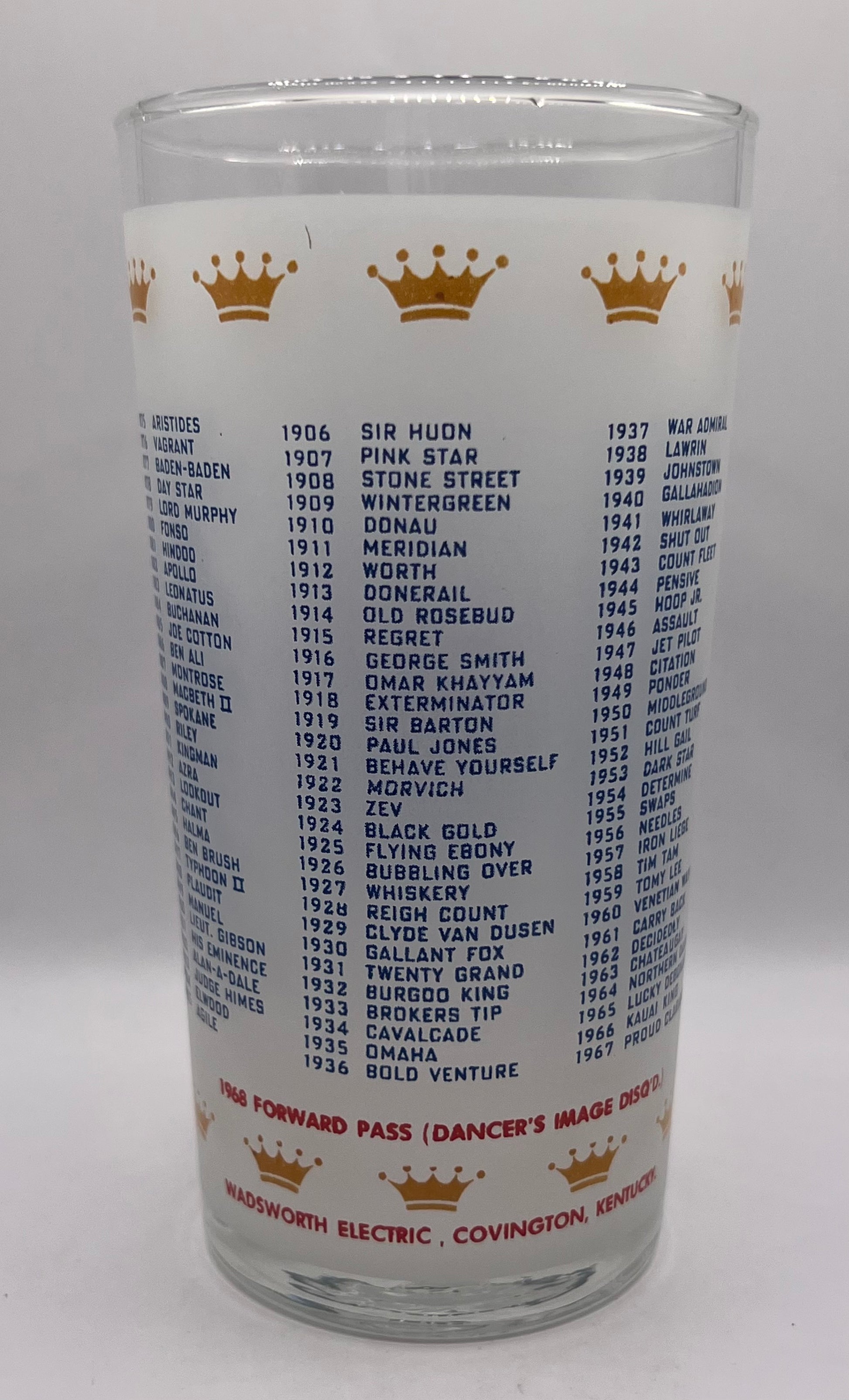 1968 Kentucky Derby Glass - Wadsworth Electric