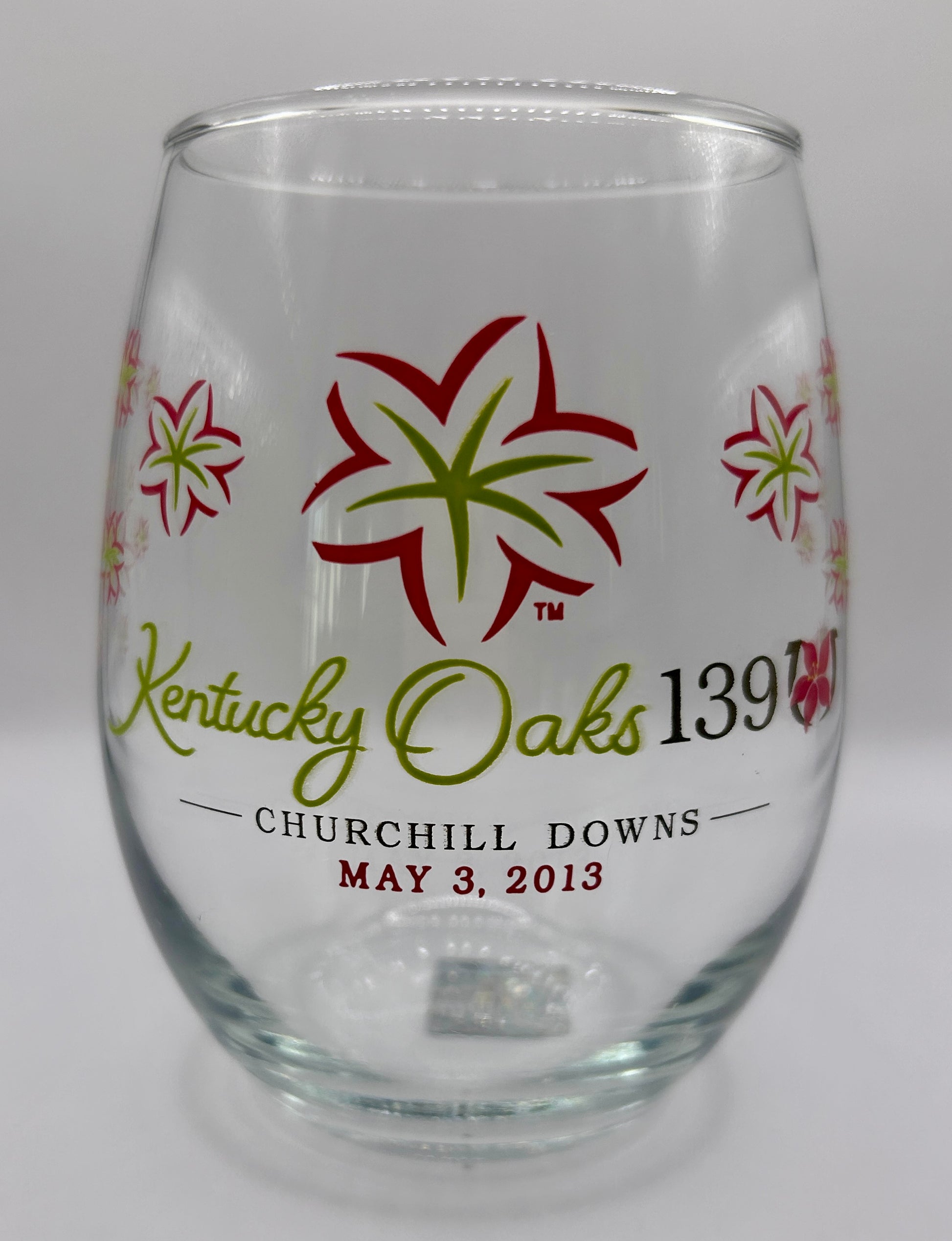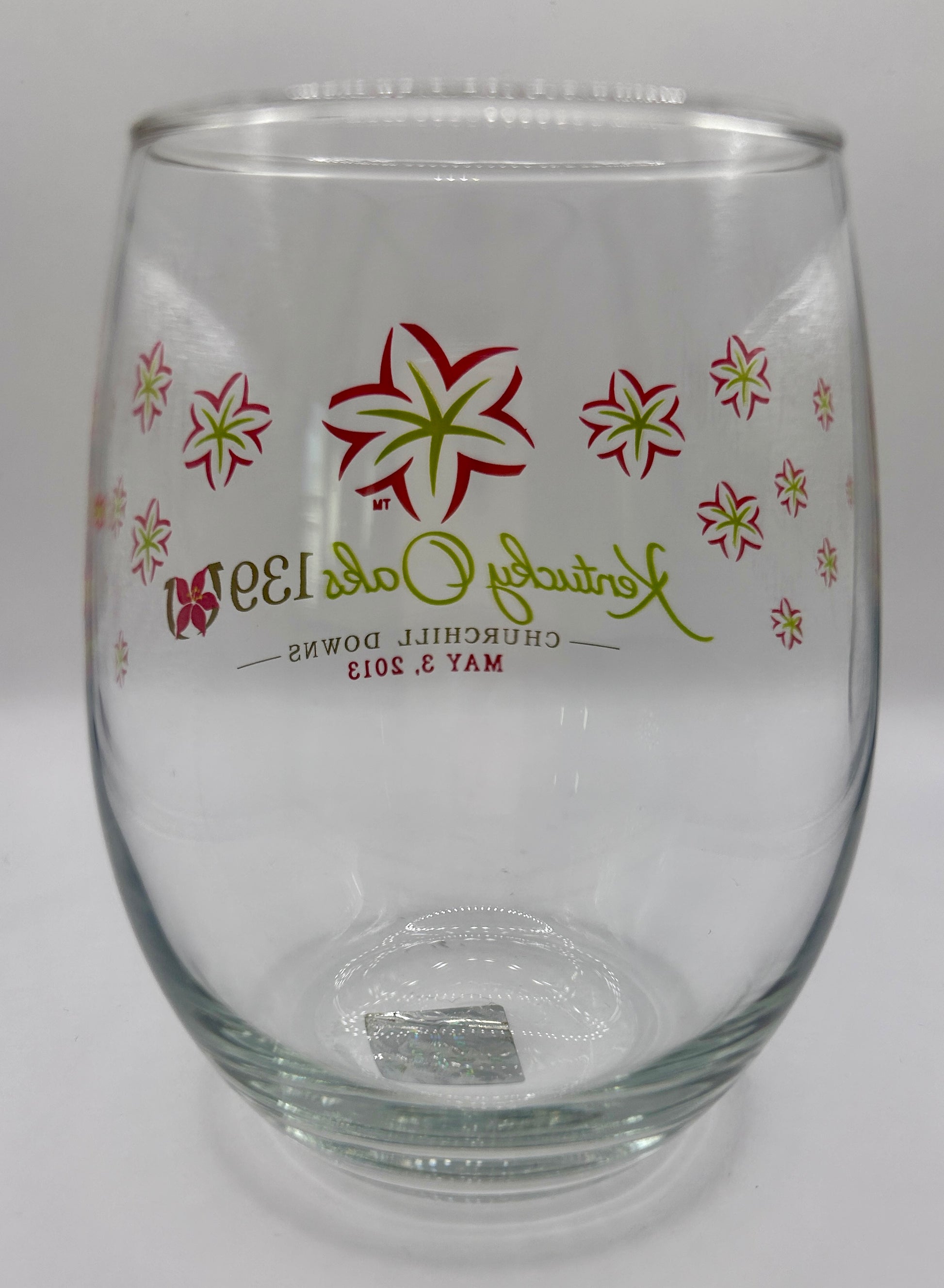 2013 Kentucky Oaks Stemless Wine Glass, see photos for condition. Has licensed decal sticker.