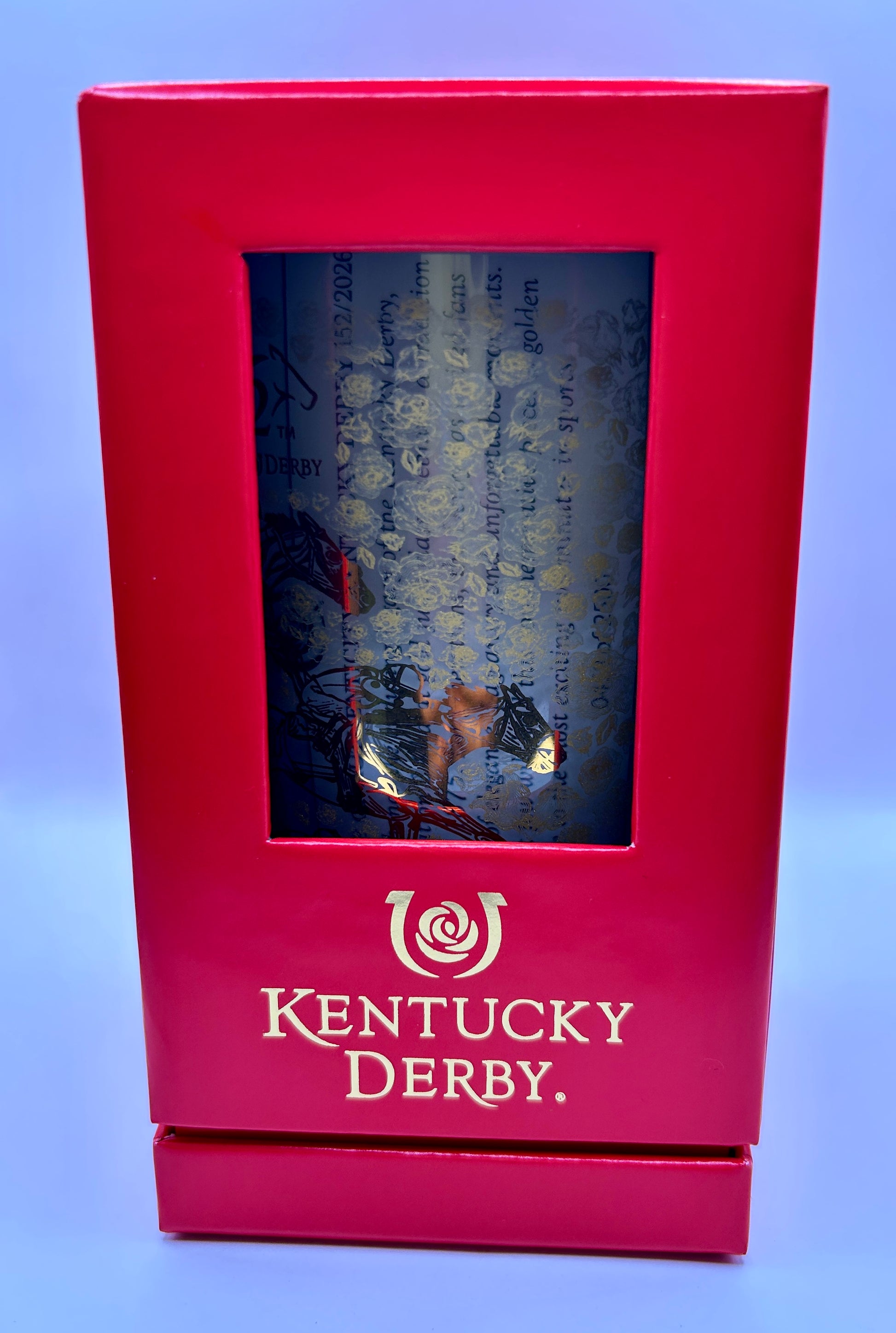 2026 Kentucky Derby Limited Edition Gold Glass. This is for the 152nd Kentucky Derby. Brand new stock out of box, has licensed decal sticker and Certificate of Authentication with number. Features a nice display box. They printed 2500 of them. Made in the USA.